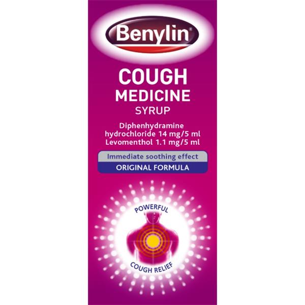 Benylin Traditional Cough Medicine Syrup helps to relieve coughs and allergies. The active ingredient diphenhydramine which is an antihistamine, helps coughs and dries the nose and chest. The levomenthol is a decongestant that helps you breathe easier.