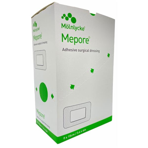 Mepore is a self-adherent dressing that absorbs blood and exudate.