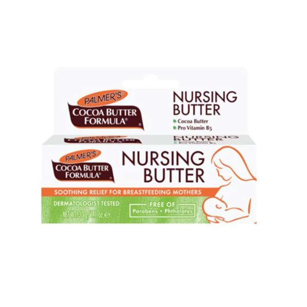 Palmer's Cocoa Butter Formula Nursing Butter, an easy-to-apply combination of pure Cocoa Butter and (Panthenol) Pro-Vitamin B5 in a soothing emollient base, helps relieve sore, cracked nipples associated with breastfeeding. Also may be used pre-natally to condition nipples for breast feeding. Dermatologically Tested.