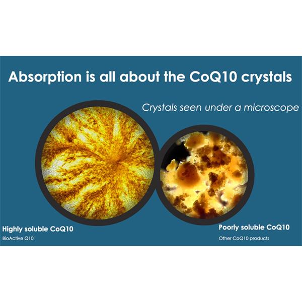 For several decades, BioActive Q10 Gold 100 mg has been one of the world’s most widely sold Q10 brands. One of the main reasons for its popularity is that fact that this preparation can document a high level of bio-availability. Q10 is a fat-soluble substance which is difficult for the body to absorb. However, thanks to a highly specialized manufacturing process where Q10 is dissolved in a vegetable oil solution and exposed to a unique heating process the Q10 molecules are able to dissolve entirely at normal body temperature. The fact that the Q10 raw material dissolve completely in this product is the reason why BioActive Q10 Gold 100 mg can deliver such superior bioavailability of its active compound.